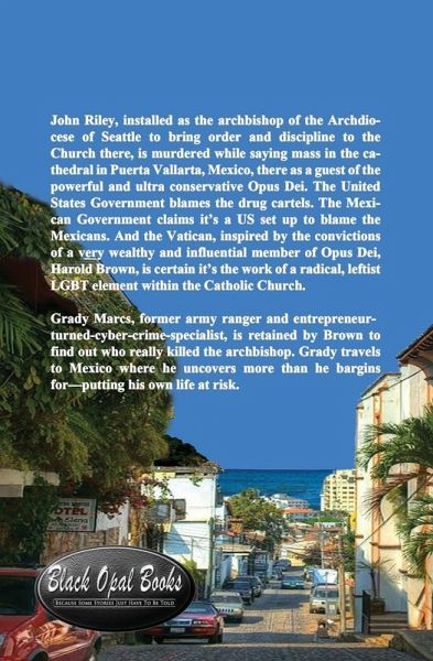 John Riley, installed as the archbishop of the Archdiocese of Seattle to bring order and discipline to the Church there, is murdered while saying mass in the cathedral in Puerta Vallarta, Mexico, there as a guest of the powerful and ultra conservative Opus Dei. The United States Gov-ernment blames the drug cartels. The Mexican Govern-ment claims it’s a US set up to blame the Mexicans. And the Vatican, inspired by the convictions of a very wealthy and influential member of Opus Dei, Harold Brown, is certain it’s the work of a radical, leftist LGBT element within the Catholic Church. Grady Marcs, former army ranger and entrepreneur-turned-cyber-crime-specialist, is retained by Brown to find out who really killed the archbishop. Grady travels to Mexico where he uncovers more than he bargains for—putting his own life at risk.