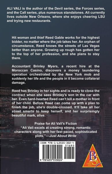 Hit woman and thief Reed Gable works for the highest bidder, no matter where the job takes her. An orphan of circumstance, Reed knows the streets of Las Vegas better than anyone. Growing up rough has gotten her to the top of her profession, and she plans to stay there. Accountant Brinley Myers, a recent hire at the Moroccan Casino, discovers a money laundering operation orchestrated by the New York mob and suddenly her life, and those in it, become collateral damage. Reed has Brinley in her sights and is ready to close the contract when she sees Brinley's son in the car with her. Even hard-hearted Reed can't kill a mother in front of her child. Before Reed can come up with a plan to finish the job, she's double crossed. It'll take all her street-smarts to keep both her, and her surprisingly beautiful mark, alive.