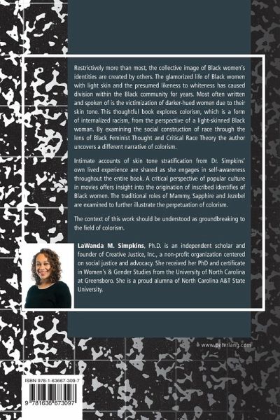 Intimate accounts of skin tone stratification from Dr. Simpkins' own lived experience are shared as she engages in self-awareness throughout the entire book. A critical perspective of popular culture in movies offers insight into the origination of inscribed identifies of Black women. The traditional roles of Mammy, Sapphire and Jezebel are examined to further illustrate the perpetuation of colorism. The context of this work should be understood as groundbreaking to the field of colorism.