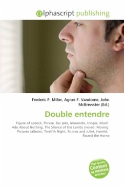A double entendre or adianoeta is a figure of speech in which a spoken phrase is devised to be understood in either of two ways. Often the first meaning is straightforward, while the second meaning is less so; often risqué, inappropriate, or ironic. The Oxford English Dictionary defines a double entendre as especially being used to "convey an indelicate meaning". It is often used to express potentially offensive opinions without the risks of explicitly doing so. A double entendre may exploit puns to convey the second meaning, but puns are more often used in sentences that do not have a second meaning. Double entendres tend to rely more on multiple meanings of words, or different interpretations of the same primary meaning; they often exploit ambiguity and may be used to introduce it deliberately in a text.