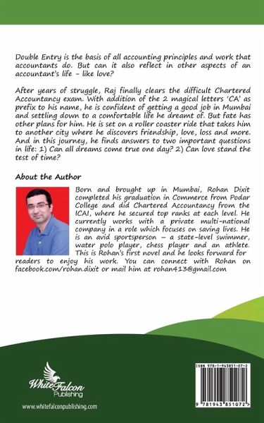 Double Entry is the basis of all accounting principles and work that accountants do. But can it also reflect in other aspects of an accountant's life - like love? After years of struggle, Raj finally clears the difficult Chartered Accountancy exam. With addition of the 2 magical letters 'CA' as prefix to his name, he is confident of getting a good job in Mumbai and settling down to a comfortable life he dreamt of. But fate has other plans for him. He is set on a roller coaster ride that takes him to another city where he discovers friendship, love, loss and more. And in this journey, he finds answers to two important questions in life: 1) Can all dreams come true one day? 2) Can love stand the test of time?