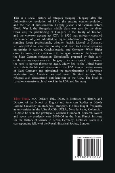 This is a social history of refugees escaping Hungary after the Bolshevik-type revolution of 1919, the ensuing counterrevolution, and the rise of anti-Semitism. Largely Jewish and German before World War I, the Hungarian middle class was torn by the disastrous war, the partitioning of Hungary in the Treaty of Trianon, and the numerus clausus act XXV in 1920 that seriously curtailed the number of Jews admitted to higher education. Hungary's outstanding future professionals, whether Jewish, Liberal or Socialist, felt compelled to leave the country and head to German-speaking universities in Austria, Czechoslovakia, and Germany. When Hitler came to power, these exiles were to flee again, many on the fringes of the huge German emigration. Emotionally prepared by their earlier threatening experiences in Hungary, they were quick to recognize the need to uproot themselves again. Many fled to the United States where their double exile catalyzed the USA into an active enemy of Nazi Germany and stimulated the transplantation of European modernism into American art and music. To their surprise, the refugees also encountered anti-Semitism in the USA. The book is based on extensive archival work in the USA and Germany.
