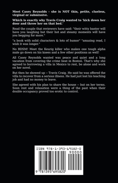 Meet Casey Reynolds - she is NOT thin, petite, clueless, virginal or submissive. Which is exactly why Travis Craig wanted to 'kick down her door and throw her on that bed.' Read the couple that reviewers have said: "their witty banter will have you laughing but their hot and steamy moments will have you begging for more." "a book with solid characters & lots of humor" "amazing read, I wish it was longer." No BDSM! Meet the Keurig killer who makes one tough alpha male go down on his knees and a few other positions as well! All Casey Reynolds wanted was peace and quiet and a long vacation from covering the crime beat in Boston. That's why she agreed to borrowing a villa in Mexico to rest, be alone and work on her novel. But then he showed up -- Travis Craig. He said he was offered the villa to recover from a serious illness. He had just lost his teaching job and had no money to leave. She agreed with his plan to share the house -- but on her terms. Soon rest and relaxation were a thing of the past when their double occupancy proved too erotic to control.