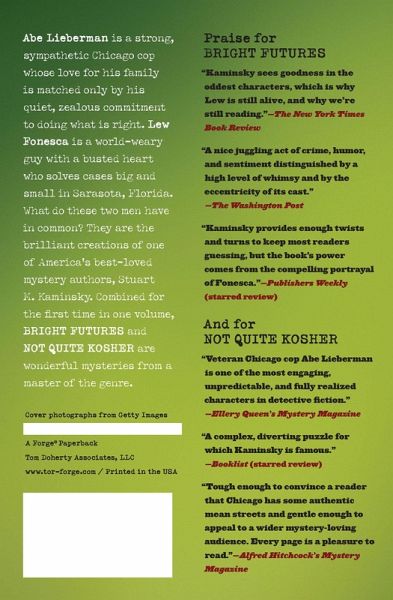 Abe Lieberman: a strong, sympathetic Chicago cop. His love for his family is matched by his quiet, zealous commitment to do what is right. Sometimes he's faced with some uncomfortable ethical choices in order to see that justice-rather than the letter of the law-is meted out. Lou Fonesca: a world-weary guy who got in a car and just started driving after his wife died and wound up in front of a Dairy Queen in Sarasota. He now makes his way amid bail jumpers and lost wives, solving the little cases and trying to get by. What do these two men have in common? They are both created by one of America's best loved mystery authors, Stuart Kaminsky. Putting two of his most beloved series into one volume gives readers an introduction into Kaminsky's world. Not Quite Kosher and Bright Futures and are two full length novels that Kaminsky fans will cheer at. Double Shot introduces new readers to a national treasure in the mystery field.