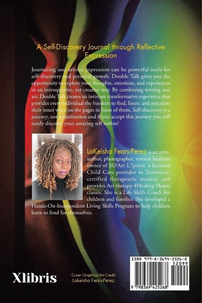 A Self-Discovery Journal through Reflective Expression Journaling and artistic expression can be powerful tools for self-discovery and personal growth. Double Talk gives you the opportunity to explore your thoughts, emotions, and experiences in an introspective, yet creative way. By combining writing and art, Double Talk creates an intimate transformative experience that provides every individual the freedom to find, listen, and articulate their inner voice on the pages in front of them. Self-discovery is a journey, not a destination and if you accept this journey you will surely discover your amazing self within!…mehr
