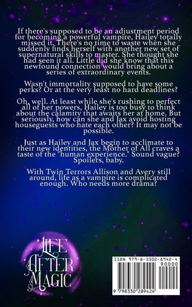 If there's supposed to be an adjustment period for becoming a powerful vampire, Hailey totally missed it. There's no time to waste when she suddenly finds herself with another new set of supernatural skills to master. She thought she had seen it all. Little did she know that this newfound connection would bring about a series of extraordinary events. Wasn't immortality supposed to have some perks? Or at the very least no hard deadlines? Oh, well. At least while she's rushing to perfect all of her powers, Hailey is too busy to think about the calamity that awaits her at home. But seriously, how can she and Jax avoid hosting houseguests who hate each other? It may not be possible. Just as Hailey and Jax begin to acclimate to their new identities, the Mother of All craves a taste of the "human experience." Sound vague? Spoilers, baby. With Twin Terrors Allison and Avery still around, life as a vampire is complicated enough. Who needs more drama?