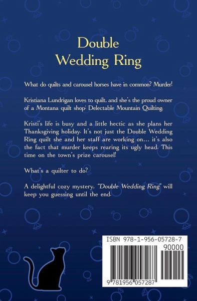 Kristiana Lundrigan loves to quilt, and she's the proud owner of a Montana quilt shop: Delectable Mountain Quilting. Kristi's life is busy and a little hectic as she plans her Thanksgiving holiday. It's not just the Double Wedding Ring quilt she and her staff are working on... it's also the fact that murder keeps rearing its ugly head. This time on the town's prize carousel! Maybe she should leave this one to Garnet County's handsome sheriff... A delightful cozy mystery, "Double Wedding Ring" will keep you guessing until the end.