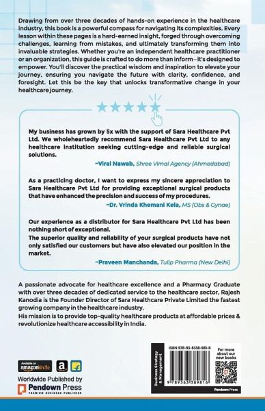 Drawing from over three decades of hands-on experience in the healthcare industry, this book is a powerful compass for navigating its complexities. Every lesson within these pages is a hard-earned insight, forged through overcoming challenges, learning from mistakes, and ultimately transforming them into invaluable strategies. Whether you're an independent healthcare practitioner or an organization, this guide is crafted to do more than inform-it's designed to empower. You'll discover the practical wisdom and inspiration to elevate your journey, ensuring you navigate the future with clarity, confidence, and foresight. Let this be the key that unlocks transformative change in your healthcare journey.A passionate advocate for healthcare excellence and a Pharmacy Graduate with over three decades of dedicated service to the healthcare sector, Rajesh Kanodia is the Founder and Director of Sara Healthcare Private Limited the fastest-growing company in the healthcare industry. His mission is to provide top-quality healthcare products at affordable prices & revolutionize healthcare accessibility in India.