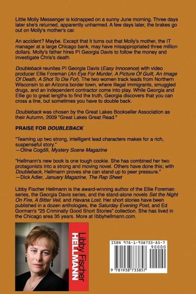 Little Molly Messenger is kidnapped on a sunny June morning. Three days later she's returned, apparently unharmed. Molly's mother, Chris, is so grateful to have her daughter back that she's willing to overlook the odd circumstances. A few days later, the brakes go out on Chris's car. An accident? Maybe. Except that it turns out that Chris, the IT manager at a large Chicago bank, may have misappropriated three million dollars. Not convinced that his daughter is safe, Molly's father hires Private Investigator Georgia Davis to follow the money and investigate Chris's death. "Doubleback," the sequel to the acclaimed Easy Innocence, reunites PI Georgia Davis with video producer Ellie Foreman ("An Eye For Murder," "A Picture Of Guilt," "An Image Of Death," "A Shot To Die For"). The two women track leads from Northern Wisconsin to an Arizona border town, where illegal immigrants, smuggled drugs, and an independent contractor called Delton Security come into play. Georgia and Ellie go to great lengths to find the truth, and Georgia discovers that you can cross a line, but sometimes you have to double back.