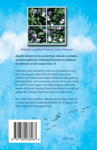 doubt [dout] to be uncertain about; consider questionable or unlikely; hesitate to believe; to distrust or be suspicious of. Following her husband's nervous breakdown and the subsequent sale of the family home, Karis Fielden now feels that maybe their lives are getting back on track. Jon's recovery means he is now ready to look for work again and after renting a flat and weeks of house hunting they have found a small but adequate cottage that they can now call home. But when Karis receives the shocking news that her ex-boss has died suddenly and left her a legacy, her life is about to change forever...