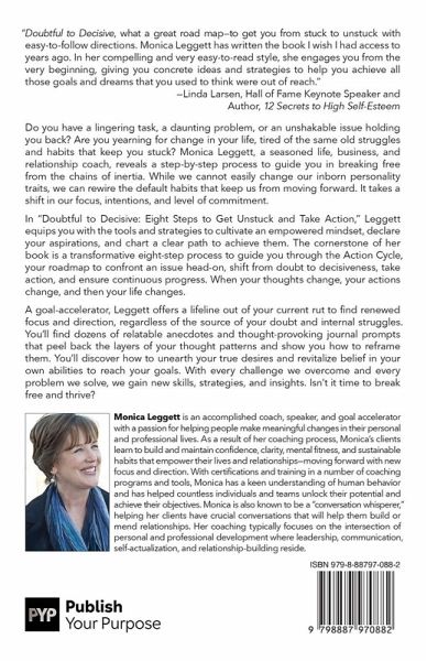 Do you have a lingering task, a daunting problem, or an unshakable issue holding you back? Are you yearning for change in your life, tired of the same old struggles and habits that keep you stuck? Monica Leggett, a seasoned life, business, and relationship coach, reveals a step-by-step process to guide you in breaking free from the chains of inertia. While we cannot easily change our inborn personality traits, we can rewire the default habits that keep us from moving forward. It takes a shift in our focus, intentions, and level of commitment. In Doubtful to Decisive: Eight Steps to Get Unstuck and Take Action, Leggett equips you with the tools and strategies to cultivate an empowered mindset, declare your aspirations, and chart a clear path to achieve them. The cornerstone of her book is a transformative eight-step process to guide you through the Action Cycle, your roadmap to confront an issue head-on, shift from doubt to decisiveness, take action, and ensure continuous progress. When your thoughts change, your actions change, and then your life changes. A goal-accelerator, Leggett offers a lifeline out of your current rut to find renewed focus and direction, regardless of the source of your doubt and internal struggles. You'll find dozens of relatable anecdotes and thought-provoking journal prompts that peel back the layers of your thought patterns and show you how to reframe them. You'll discover how to unearth your true desires and revitalize belief in your own abilities to reach your goals. With every challenge we overcome and every problem we solve, we gain new skills, strategies, and insights. Isn't it time to break free and thrive?