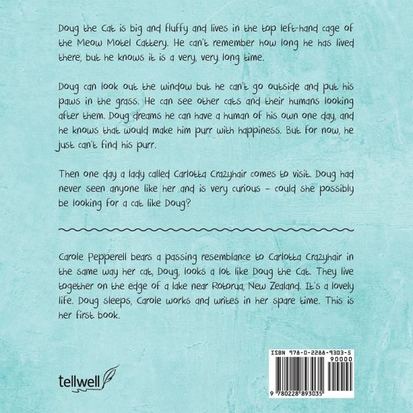 Doug the Cat is big and fluffy and lives in the top left-hand cage of the Meow Motel Cattery. He can't remember how long he has lived there, but he knows it is a very, very long time. Doug can look out the window but he can't go outside and put his paws in the grass. He can see other cats and their humans looking after them. Doug dreams he can have a human of his own one day, and he knows that would make him purr with happiness. But for now, he just can't find his purr. Then one day a lady called Carlotta Crazyhair comes to visit. Doug had never seen anyone like her and is very curious - could she possibly be looking for a cat like Doug?Doug the Cat is big and fluffy and lives in the top left-hand cage of the Meow Motel Cattery. He can't remember how long he has lived there, but he knows it is a very, very long time. Doug can look out the window but he can't go outside and put his paws in the grass. He can see other cats and their humans looking after them. Doug dreams he can have a human of his own one day, and he knows that would make him purr with happiness. But for now, he just can't find his purr. Then one day a lady called Carlotta Crazyhair comes to visit. Doug had never seen anyone like her and is very curious - could she possibly be looking for a cat like Doug?