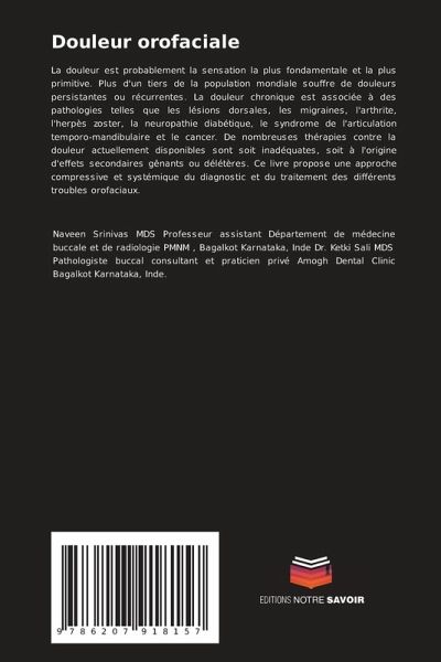 La douleur est probablement la sensation la plus fondamentale et la plus primitive. Plus d'un tiers de la population mondiale souffre de douleurs persistantes ou récurrentes. La douleur chronique est associée à des pathologies telles que les lésions dorsales, les migraines, l'arthrite, l'herpès zoster, la neuropathie diabétique, le syndrome de l'articulation temporo-mandibulaire et le cancer. De nombreuses thérapies contre la douleur actuellement disponibles sont soit inadéquates, soit à l'origine d'effets secondaires gênants ou délétères. Ce livre propose une approche compressive et systémique du diagnostic et du traitement des différents troubles orofaciaux.