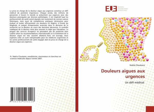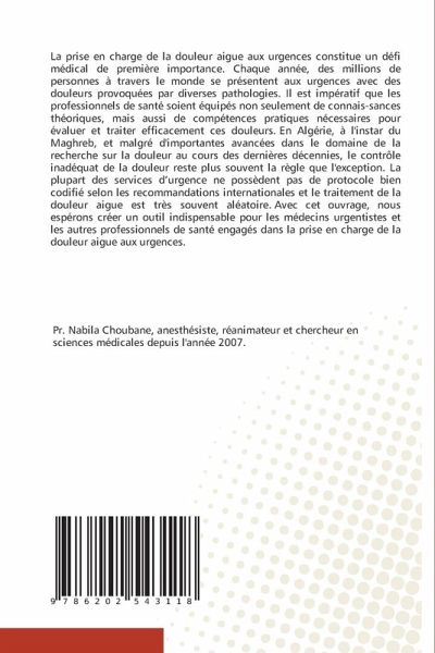 La prise en charge de la douleur aigue aux urgences constitue un défi médical de première importance. Chaque année, des millions de personnes à travers le monde se présentent aux urgences avec des douleurs provoquées par diverses pathologies. Il est impératif que les professionnels de santé soient équipés non seulement de connais-sances théoriques, mais aussi de compétences pratiques nécessaires pour évaluer et traiter efficacement ces douleurs. En Algérie, à l'instar du Maghreb, et malgré d'importantes avancées dans le domaine de la recherche sur la douleur au cours des dernières décennies, le contrôle inadéquat de la douleur reste plus souvent la règle que l'exception. La plupart des services d'urgence ne possèdent pas de protocole bien codifié selon les recommandations internationales et le traitement de la douleur aigue est très souvent aléatoire. Avec cet ouvrage, nous espérons créer un outil indispensable pour les médecins urgentistes et les autres professionnels de santé engagés dans la prise en charge de la douleur aigue aux urgences.