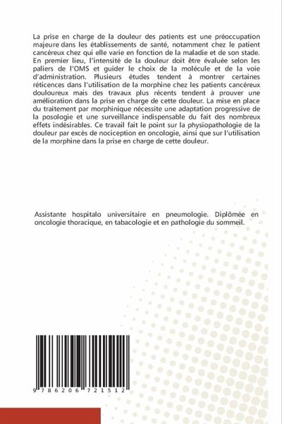 La prise en charge de la douleur des patients est une préoccupation majeure dans les établissements de santé, notamment chez le patient cancéreux chez qui elle varie en fonction de la maladie et de son stade. En premier lieu, l'intensité de la douleur doit être évaluée selon les paliers de l'OMS et guider le choix de la molécule et de la voie d'administration. Plusieurs études tendent à montrer certaines réticences dans l'utilisation de la morphine chez les patients cancéreux douloureux mais des travaux plus récents tendent à prouver une amélioration dans la prise en charge de cette douleur. La mise en place du traitement par morphinique nécessite une adaptation progressive de la posologie et une surveillance indispensable du fait des nombreux effets indésirables. Ce travail fait le point sur la physiopathologie de la douleur par excès de nociception en oncologie, ainsi que sur l'utilisation de la morphine dans la prise en charge de cette douleur.