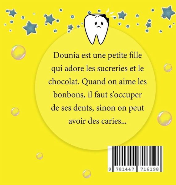 Dounia Aie! j'ai mal aux dents est une Histoire Illustrée, pour apprendre aux petits de prendre soin de leurs dents et de ne pas manger trop de sucre. Dounia est une petite fille qui adore les sucreries et le chocolat. Quand on aime les bonbons, il faut s'occuper de ses dents, sinon on peut avoir des caries...