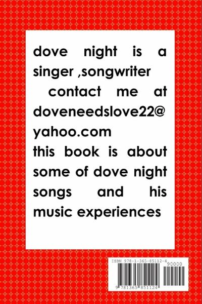 Dove Night is a tall big black guy who loves to make music, this book is about his songs, and the inspiration behind some of them. This book tells of dove experiences in los angeles contact him at doveneedslove22@yahoo.com