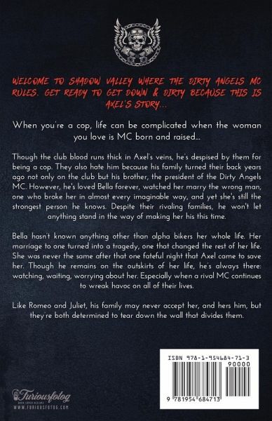 Welcome to Shadow Valley where the Dirty Angels MC rules. Get ready to get Down & Dirty because this is Axel's story... When you're a cop, life can be complicated when the woman you love is MC born and raised... Though the club blood runs thick in Axel's veins, he's despised by them for being a cop. They also hate him because his family turned their back years ago not only on the club but his brother, the president of the Dirty Angels MC. However, he's loved Bella forever, watched her marry the wrong man, one who broke her in almost every imaginable way, and yet she's still the strongest person he knows. Despite their rivaling families, he won't let anything stand in the way of making her his this time. Bella hasn't known anything other than alpha bikers her whole life. Her marriage to one turned into a tragedy, one that changed the rest of her life. She was never the same after that one fateful night that Axel came to save her. Though he remains on the outskirts of her life, he's always there: watching, waiting, worrying about her. Especially when a rival MC continues to wreak havoc on all of their lives. Like Romeo and Juliet, his family may never accept her, and hers him, but they're both determined to tear down the wall that divides them. Note: Down & Dirty: Axel is the fifth book in the Dirty Angels MC series. It's highly recommended that you read this 10-book series in order. It has no cheating, no relationship cliffhanger and, as always, has an HEA.