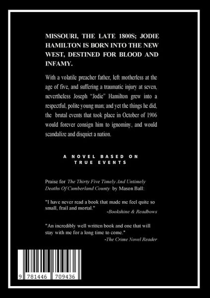 Missouri, the late 1800s; Jodie Hamilton is born into the new west, destined for blood and infamy. With a volatile preacher father, left motherless at the age of five, and suffering a traumatic injury at seven, nevertheless Joseph "Jodie" Hamilton grew into a respectful, polite young man; and yet the things he did, the brutal events that took place in October of 1906 would forever consign him to ignominy, and would scandalize and disquiet a nation. A NOVEL BASED ON TRUE EVENTS