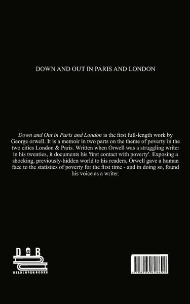 Down and Out in Paris and London is the first full-length work by George Orwell. It is a memoir in two parts on the theme of poverty in the two cities London & Paris. Written when Orwell was a struggling writer in his twenties, it documents his 'first contact with poverty'. Exposing a shocking, previously-hidden world to his readers, Orwell gave a human face to the statistics of poverty for the first time - and in doing so, found his voice as a writer.