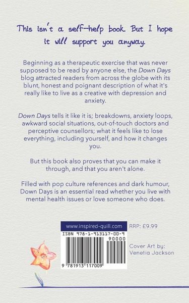 This isn't a self-help book. But I hope it will support you anyway. Beginning as a therapeutic exercise that was never supposed to be read by anyone else, the Down Days blog attracted readers from across the globe with its blunt, honest and poignant description of what it's really like to live as a creative with depression and anxiety. Down Days tells it like it is; breakdowns, anxiety loops, awkward social situations, out-of-touch doctors and perceptive counsellors; what it feels like to lose everything, including yourself, and how it changes you. But this book also proves that you can make it through, and that you aren't alone. Filled with pop culture references and dark humour, Down Days is an essential read whether you live with mental health issues or love someone who does.