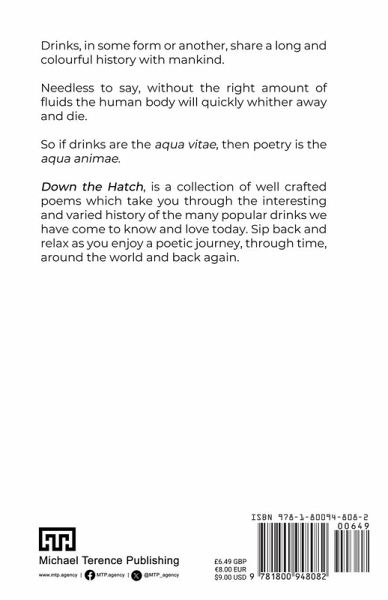 Drinks, in some form or another, share a long and colourful history with mankind. Needless to say, without the right amount of fluids the human body will quickly whither away and die. So if drinks are the aqua vitae, then poetry is the aqua animae. Down the Hatch, is a collection of well crafted poems which take you through the interesting and varied history of the many popular drinks we have come to know and love today. Sip back and relax as you enjoy a poetic journey, through time, around the world and back again.