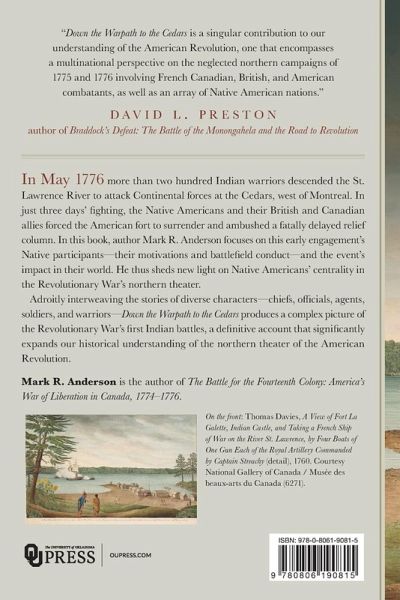 In May 1776 more than two hundred Indian warriors descended the St. Lawrence River to attack Continental forces at the Cedars, west of Montreal. In just three days' fighting, the Native Americans and their British and Canadian allies forced the American fort to surrender and ambushed a fatally delayed relief column. In Down the Warpath to the Cedars, author Mark R. Anderson flips the usual perspective on this early engagement and focuses on its Native participants-their motivations, battlefield conduct, and the event's impact in their world. In this way, Anderson's work establishes and explains Native Americans' centrality in the Revolutionary War's northern theater. Anderson's dramatic, deftly written narrative encompasses decisive diplomatic encounters, political intrigue, and scenes of brutal violence but is rooted in deep archival research and ethnohistorical scholarship. It sheds new light on the alleged massacre and atrocities that other accounts typically focus on. At the same time, Anderson traces the aftermath for Indian captives and military hostages, as well as the political impact of the Cedars reaching all the way to the Declaration of Independence. The action at the Cedars emerges here as a watershed moment, when Indian neutrality frayed to the point that hundreds of northern warriors entered the fight between crown and colonies. Adroitly interweaving the stories of diverse characters-chiefs, officials, agents, soldiers, and warriors-Down the Warpath to the Cedars produces a complex picture, and a definitive account, of the Revolutionary War's first Indian battles, an account that significantly expands our historical understanding of the northern theater of the American Revolution.