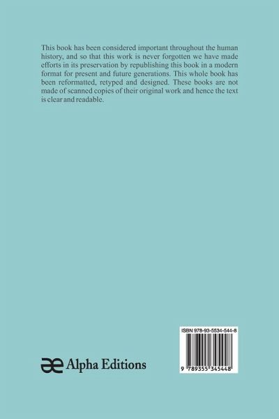 This book has been considered important throughout the human history, and so that this work is never forgotten we have made efforts in its preservation by republishing this book in a modern format for present and future generations. This whole book has been reformatted, retyped and designed. These books are not made of scanned copies and hence the text is clear and readable.