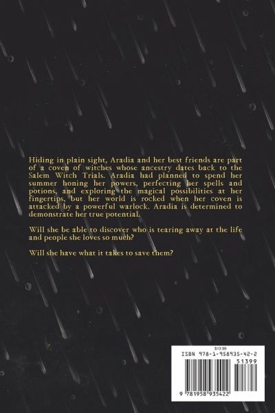 Hiding in plain sight, Aradia and her best friends are part of a coven of witches whose ancestry dates back to the Salem Witch Trials. Aradia had planned to spend her summer honing her powers, perfecting her spells and potions, and exploring the magical possibilities at her fingertips, but her world is rocked when her coven is attacked by a powerful warlock. Aradia is determined to demonstrate her true potential. Will she be able to discover who is tearing away at the life and people she loves so much? Will she have what it takes to save them?