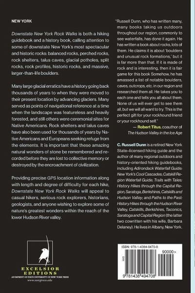Downstate New York Rock Walks is both a hiking guidebook and a history book, calling attention to some of downstate New York's most spectacular and historic rocks: balanced rocks, perched rocks, rock shelters, talus caves, glacial potholes, split rocks, rock profiles, historic rocks, and massive, larger-than-life boulders. Many large glacial erratics have a history going back thousands of years to when they were moved to their present location by advancing glaciers. Many served as points of navigational reference at a time when the landscape was featureless and heavily forested, and still others were ceremonial sites for Native Americans. Rock shelters and talus caves have also been used for thousands of years by Native Americans and Europeans seeking refuge from the elements. It is important that these amazing natural wonders of stone be remembered and recorded before they are lost to collective memory or destroyed by the encroachment of civilization. Providing precise GPS location information along with length and degree of difficulty for each hike, Downstate New York Rock Walks will appeal to casual hikers, serious rock explorers, historians, geologists, and anyone wishing to explore some of nature's greatest wonders within the reach of the lower Hudson River valley.