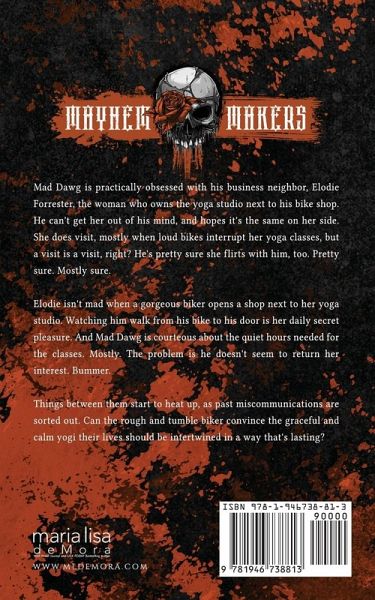 Mad Dawg is practically obsessed with his business neighbor, Elodie Forrester, the woman who owns the yoga studio next to his bike shop. He can't get her out of his mind, and hopes it's the same on her side. She does visit, mostly when loud bikes interrupt her yoga classes, but a visit is a visit, right? He's pretty sure she flirts with him, too. Pretty sure. Mostly sure. Elodie isn't mad when a gorgeous biker opens a shop next to her yoga studio. Watching him walk from his bike to his door is her daily secret pleasure. And Mad Dawg is courteous about the quiet hours needed for the classes. Mostly. The problem is he doesn't seem to return her interest. Bummer. Things between them start to heat up, as past miscommunications are sorted out. Can the rough and tumble biker convince the graceful and calm yogi their lives should be intertwined in a way that's lasting?