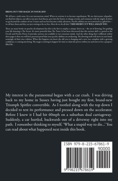 BRING OUT THE MAGIC IN YOUR LIFE! We all have a sixth sense. It is our unconscious mind. When we activate it we become superhuman. We are clairvoyant, telepathic, can find lost objects, can talk to our pets, heal disease, peer into the future, re-charge crystals, and commune with the angels. In short we go beyond the confines of our 5 senses and our lives become a daily adventure. Psychic abilities are not restricted to a gifted few - we all have them and they are just waiting to be set free. How do we do all this? THIS SHORT CUT WILL AMAZE YOU. There are many books on psychic development but this is the first to employ a unique short-cut - the art of dowsing. For guiding your life dowsing is The Secret. It's more powerful than The Tarot. It has been discovered that this ancient skill is a portal to the Occult and Psychic Power. It provides answers not available to our conscious minds. And the other thing that is different within these pages is that you will have practical proof that your psychic abilities are awakening. The dowsing tools will move in your hand, seemingly of their own volition. When this happens you know the old you is changing and a new you, complete with a growing confidence, is coming into being. The magic is starting to happen! It's time to claim the power within you and start to live a purpose-filled life.