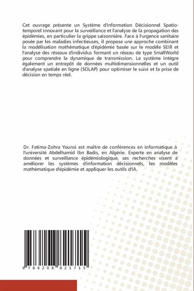 Cet ouvrage présente un Système d'Information Décisionnel Spatio-temporel innovant pour la surveillance et l'analyse de la propagation des épidémies, en particulier la grippe saisonnière. Face à l'urgence sanitaire posée par les maladies infectieuses, il propose une approche combinant la modélisation mathématique d'épidémie basée sur le modèle SEIR et l'analyse des réseaux d'individus formant un réseau de type SmallWorld pour comprendre la dynamique de transmission. Le système intègre également un entrepôt de données multidimensionnelles et un outil d'analyse spatiale en ligne (SOLAP) pour optimiser le suivi et la prise de décision en temps réel.