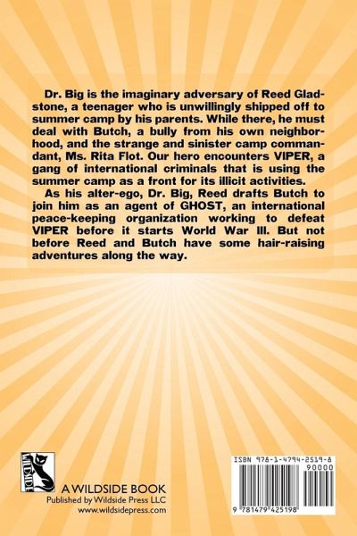Dr. Big is the imaginary adversary of Reed Gladstone, a teenager who is unwillingly shipped off to summer camp by his parents. While there, he must deal with Butch, a bully from his own neighborhood, and the strange and sinister camp commandant, Ms. Rita Flot. Our hero encounters VIPER, a gang of international criminals that is using the summer camp as a front for its illicit activities. As his alter-ego, Dr. Big, Reed drafts Butch to join him as an agent of GHOST, an international peace-keeping organization working to defeat VIPER before it starts World War III. But not before Reed and Butch have some hair-raising adventures along the way.