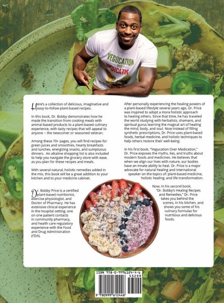 Dr. Bobby Price is a certified plant-based nutritionist, exercise physiologist, and Doctor of Pharmacy. He has extensive clinical experience in the hospital setting, one-on-one patient contacts in community pharmacy, and health care regulatory experience with the Food and Drug Administration (FDA).After personally experiencing the healing powers of a plant-based lifestyle several years ago, Dr. Price was inspired to adopt a more holistic approach to healing others. Since then, he has traveled the world studying with herbalists, shamans, and spiritual gurus, learning the magical art of healing the mind, body, and soul. Now instead of filling synthetic prescriptions, Dr. Price uses plant-based foods, herbal medicine, and holistic techniques to help others restore their well-being.In his first book, "Vegucation Over Medication," Dr. Price exposes the myths, lies, and truths about modern foods and medicines. He believes that when we align our lives with nature, our bodies have an innate ability to heal. Dr. Price is a major advocate for natural healing and an international speaker on the topics of: plant-based medicine, holistic healing, and life transformation. Now, in his second book, "Dr. Bobby's Recipes and Remedies," Dr. Price takes you behind the scenes in his kitchen and shows you some of his culinary formulas for nutritious and delicious foods.