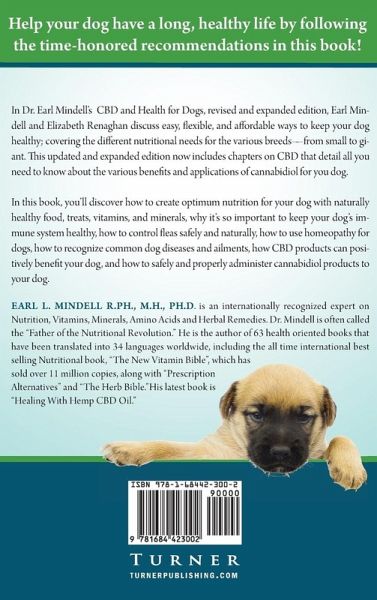 Help your dog have a long, healthy life by following the time-honored recommendations in this book! In Dr. Earl Mindell's CBD and Health for Dogs, revised and expanded edition, Earl Mindell and Elizabeth Renaghan discuss easy, flexible, and affordable ways to keep your dog healthy; covering the different nutritional needs for the various breeds-from small to giant. This updated and expanded edition now includes chapters on CBD that detail all you need to know about the various benefits and applications of cannabidiol for you dog.