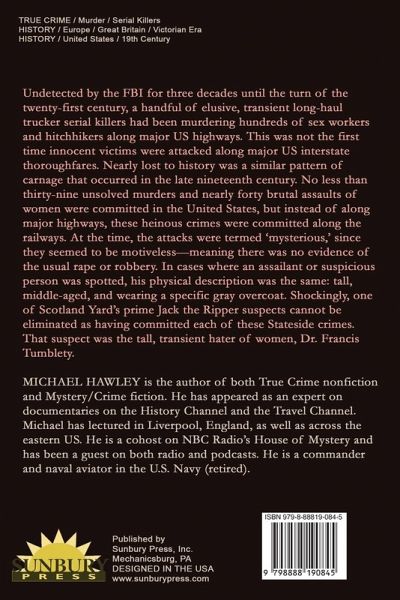Undetected by the FBI for three decades until the turn of the twenty-first century, a handful of elusive, transient long-haul trucker serial killers had been murdering hundreds of sex workers and hitchhikers along major US highways. This was not the first time innocent victims were attacked along major US interstate thoroughfares. Nearly lost to history was a similar pattern of carnage that occurred in the late nineteenth century. No less than thirty-nine unsolved murders and nearly forty brutal assaults of women were committed in the United States, but instead of along major highways, these heinous crimes were committed along the railways. At the time, the attacks were termed 'mysterious,' since they seemed to be motiveless-meaning there was no evidence of the usual rape or robbery. In cases where an assailant or suspicious person was spotted, his physical description was the same: tall, middle-aged, and wearing a specific gray overcoat. Shockingly, one of Scotland Yard's prime Jack the Ripper suspects cannot be eliminated as having committed each of these Stateside crimes. That suspect was the tall, transient hater of women, Dr. Francis Tumblety.