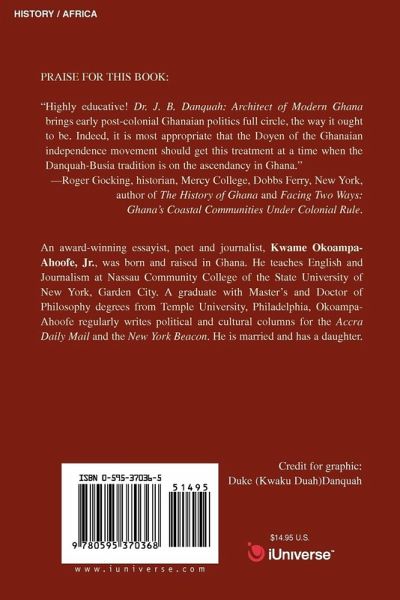 PRAISE FOR THIS BOOK: "Highly educative! Dr. J. B. Danquah: Architect of Modern Ghana brings early post-colonial Ghanaian politics full circle, the way it ought to be. Indeed, it is most appropriate that the Doyen of the Ghanaian independence movement should get this treatment at a time when the Danquah-Busia tradition is on the ascendancy in Ghana." -Roger Gocking, historian, Mercy College, Dobbs Ferry, New York, author of The History of Ghana and Facing Two Ways: Ghana's Coastal Communities Under Colonial Rule.