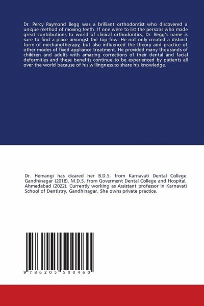 Dr. Percy Raymond Begg was a brilliant orthodontist who discovered a unique method of moving teeth. If one were to list the persons who made great contributions to world of clinical orthodontics, Dr. Begg's name is sure to find a place amongst the top few. He not only created a distinct form of mechanotherapy, but also influenced the theory and practice of other modes of fixed appliance treatment. He provided many thousands of children and adults with amazing corrections of their dental and facial deformities and these benefits continue to be experienced by patients all over the world because of his willingness to share his knowledge.