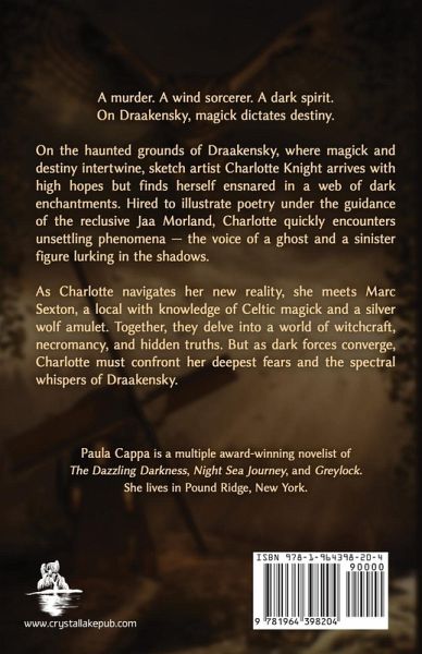 A murder. A wind sorcerer. A dark spirit. On Draakensky, magick dictates destiny. Welcome to the realm where magick governs fate and the supernatural lurks in every shadow. In the quaint town of Bedford, New York, the Chief of Police discovers the body of an elderly woman floating in the Mianus River, signaling the start of a chilling mystery. At the heart of the story is Charlotte Knight, a sketch artist hired to illustrate the poetry of Rainer Maria Rilke under the enigmatic Jaa Morland. But Charlotte's artistic journey turns into a supernatural nightmare as she encounters a ghostly presence and a sinister stalker. When a dark force of nature threatens her safety, Charlotte finds solace in Marc Sexton, a local restaurant owner with a deep connection to the ghostly Otherworld and Celtic magick. Their romance ignites a perilous adventure through owl magick, witchcraft, and necromancy. As the supernatural events intensify, Charlotte must battle her fears and grapple with Marc's hidden truths to uncover the secrets of Draakensky. Paula Cappa, the award-winning author of Greylock, Night Sea Journey, and The Dazzling Darkness, delivers a mesmerizing tale where every turn brings readers closer to a world of ghosts, magick, and unexpected revelations. Draakensky is a captivating blend of dark fantasy romance and supernatural suspense, perfect for fans of Gothic fiction and supernatural thrillers. If you enjoyed Susan Hill's The Woman in Black or Shirley Jackson's The Haunting of Hill House, you'll find Paula Cappa's mesmerizing tale of ghosts, magick, and hidden truths enthralling. Come and embrace the chilling atmosphere of Draakensky.