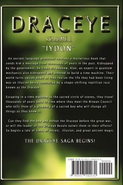 An ancient language professor receives a mysterious book that contains messages from thousands of years in the past. Soon the professor finds himself and his nephew, a quantum mechanics experts, kidnapped by the American government. The captors order that a time machine be built. It is the beginning of an experience that turns the two men's world upside down. Much is revealed to them, including that the life they had been living was an illusion being controlled by a shape-shifting reptillian race known as the Draceye. Escaping in a time machine to the Sacred Circle of Stones, the two men journey back in time where they meet the Nineian Council. It is from the Council members that the men learn of a prophecy about a sacred boy who will change all things as they know it. Can they find the boy and defeat the Draceye or will the leader of the Draceye, Bezale, outwit them in thier efforts? So begins a tale of time, deceit, illusion, and great ancient magic. The Draceye saga begins...