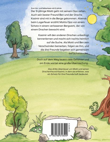 Der 9-jährige Matti geht mit seinem Opa zelten. Auch sein bester Freund Ben und der Drache Kasimir sind mit in die Berge gekommen. Abends beim Lagerfeuer erzählt Mattis Opa von einem Schatz in einem verlassenen Bergwerk, der von einem Drachen bewacht wird. Kasimir will den anderen Drachen unbedingt kennenlernen und macht sich nachts heimlich auf die Suche. Als Matti und Ben sein Verschwinden bemerken, folgen sie ihm, und die drei Freunde begeben sich gemeinsam auf Schatzsuche. Doch auf dem Weg lauern viele Gefahren und am Ende wartet eine große Überraschung.