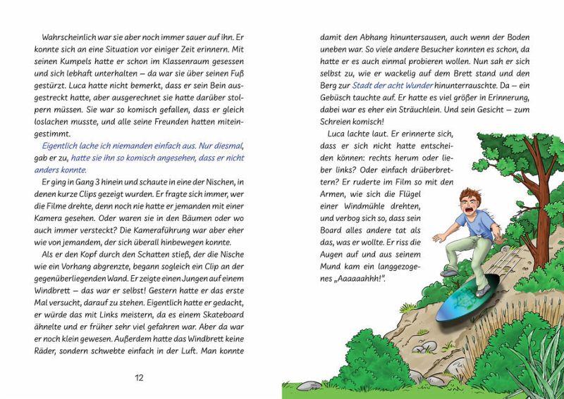 Die schüchterne Jenny und ihr vorlauter Klassenkamerad Luca, der über alles und jeden lacht, treffen sich ausgerechnet in Mirathasia, der Fantasie-Welt, in der nur Kinder zutritt haben und aufregende Abenteuer erleben. Das Luca dann noch am Unterricht zum Drachenfliegen teilnimmt, passt Jenny auch so überhaupt gar nicht.