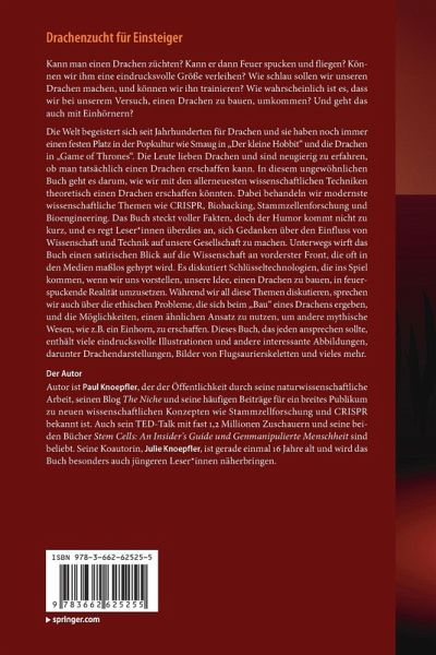 Die Welt begeistert sich seit Jahrhunderten für Drachen und sie haben noch immer einen festen Platz in der Popkultur wie Smaug in "Der kleine Hobbit" und die Drachen in "Game of Thrones". Die Leute lieben Drachen und sind neugierig zu erfahren, ob man tatsächlich einen Drachen erschaffen kann. In diesem ungewöhnlichen Buch geht es darum, wie wir mit den allerneuesten wissenschaftlichen Techniken theoretisch einen Drachen erschaffen könnten. Dabei behandeln wir modernste wissenschaftliche Themen wie CRISPR, Biohacking, Stammzellenforschung und Bioengineering. Das Buch steckt voller Fakten, doch der Humor kommt nicht zu kurz, und es regt Leser_innen überdies an, sich Gedanken über den Einfluss von Wissenschaft und Technik auf unsere Gesellschaft zu machen. Unterwegs wirft das Buch einen satirischen Blick auf die Wissenschaft an vorderster Front, die oft in den Medien maßlos gehypt wird. Es diskutiert Schlüsseltechnologien, die ins Spiel kommen, wenn wir uns vorstellen, unsere Idee, einen Drachen zu bauen, in feuerspuckende Realität umzusetzen. Während wir all diese Themen diskutieren, sprechen wir auch über die ethischen Probleme, die sich beim "Bau" eines Drachens ergeben, und die Möglichkeiten, einen ähnlichen Ansatz zu nutzen, um andere mythische Wesen, wie z.B. ein Einhorn, zu erschaffen. Dieses Buch, das jeden ansprechen sollte, enthält viele eindrucksvolle Illustrationen und andere interessante Abbildungen, darunter Drachendarstellungen, Bilder von Flugsaurierskeletten und vieles mehr.