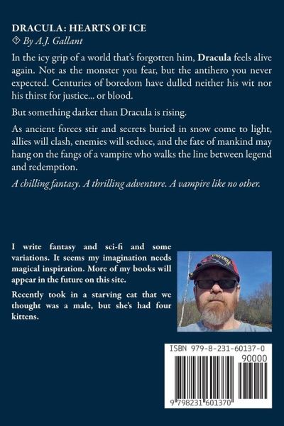 DRACULA: HEARTS OF ICE ¿ By A.J. Gallant In the icy grip of a world that's forgotten him, Dracula feels alive again. Not as the monster you fear, but the antihero you never expected. Centuries of bordom have dulled neither his wit nor his thirst for justice... or blood. But something darker than Dracula is rising. As ancient forces stir and secrets buried in snow come to light, allies will clash, enemies will seduce, and the fate of mankind may hang on the fangs of a vampire who walks the line between legend and redemption.