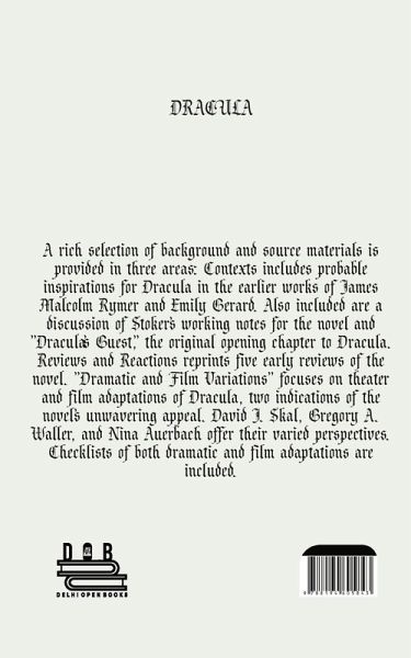 Dracula is a Gothic horror novel by Bram Stoker. The novel tells the story of Dracula's attempt to move from Transylvania to England so that he may find new blood and spread the undead curse, and of the battle between Dracula and a small group of people led by Professor Abraham Van Helsing.