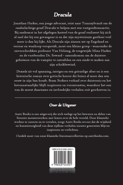 Dracula is een tijdloze gotische horrorroman en volgt de strijd tegen graaf Dracula terwijl hij zijn vampiervloek verspreidt van Transsylvanië naar Engeland. Dracula is een mix van spanning, mysterie en bovennatuurlijke terreur.