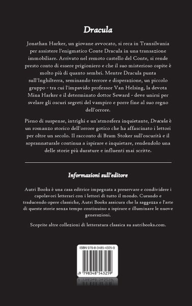 Romanzo horror gotico senza tempo, Dracula segue la battaglia contro il Conte Dracula mentre diffonde la sua maledizione vampiresca dalla Transilvania all'Inghilterra, mescolando suspense, mistero e terrore soprannaturale.