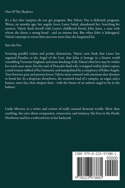 Out Of The Shadows It's a fact that vampires do not get pregnant. But Valerie Tate is definitely pregnant. Worse, six months ago, her angelic lover, Lance Soliel, abandoned her. Searching for answers, Valerie finds herself with Lance's childhood friend, John Jante, a man with whom she shares a strong bond - and an intense lust. But when John is kidnapped, Valerie's attempt to rescue him uncovers more than she bargained for. Into the Fire Scouring parallel realms and pocket dimensions, Valerie soon finds that Lance has regained Paradise as the Angel of the Lost, that John is hostage in a bizarre world resembling Victorian England, and most shocking of all, Valerie's first love may be within her reach once more. For the soul of Dracula's dead wife, is trapped within John's captor, a mad woman robbed of her humanity and manipulated by a conspiracy of Fallen Angels. Torn between past and present lovers, Valerie must contend with emotions that threaten to break her. In a desperate showdown, the reunited triad of a vampire, an angel, and a human, must face their deepest fears - with the future of an unborn angel-to-be in the balance.