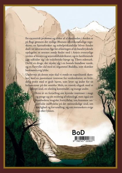 En excentrisk professor og elsker af al skønheden i verden er på flugt gennem det sydlige Bhutans ufremkommelige regnskove; en hjerneforsker og nobelpriskandidat bliver fundet død i sit laboratorium lige før afsløringen af en banebrydende opdagelse; et uventet møde finder sted i Assisis eventyrlige verden af klostre og senmiddelalderkunst; og en hæsblæsende jagt udfolder sig i de sydsibiriske bjerge og Tibets ødemark. Dertil en drage, der skjuler sig i en brønds bundløse vande, og en fortryllet dal med en urgammel Buddha, som skænker beskueren evig lykke. Undervejs på denne rejse skal vi møde en napolitansk skønhed med en passioneret interesse for verdenskunst, en kvindelig præst med et godt hjerte, som lever og ånder for sit kulturcenter på det smukke Mols, en russisk oligark med et splittet sind, en uheldig kunstmaler, og mange andre. Dette er en fortælling om kyniske interesser i magt og penge og om misbrug af teknologi, men også om skønhedens magiske fortryllelse, om kunstens underfulde indflydelse på det menneskelige sind, om kærlighed og forvandling, og om menneskers evige jagt efter lykken.